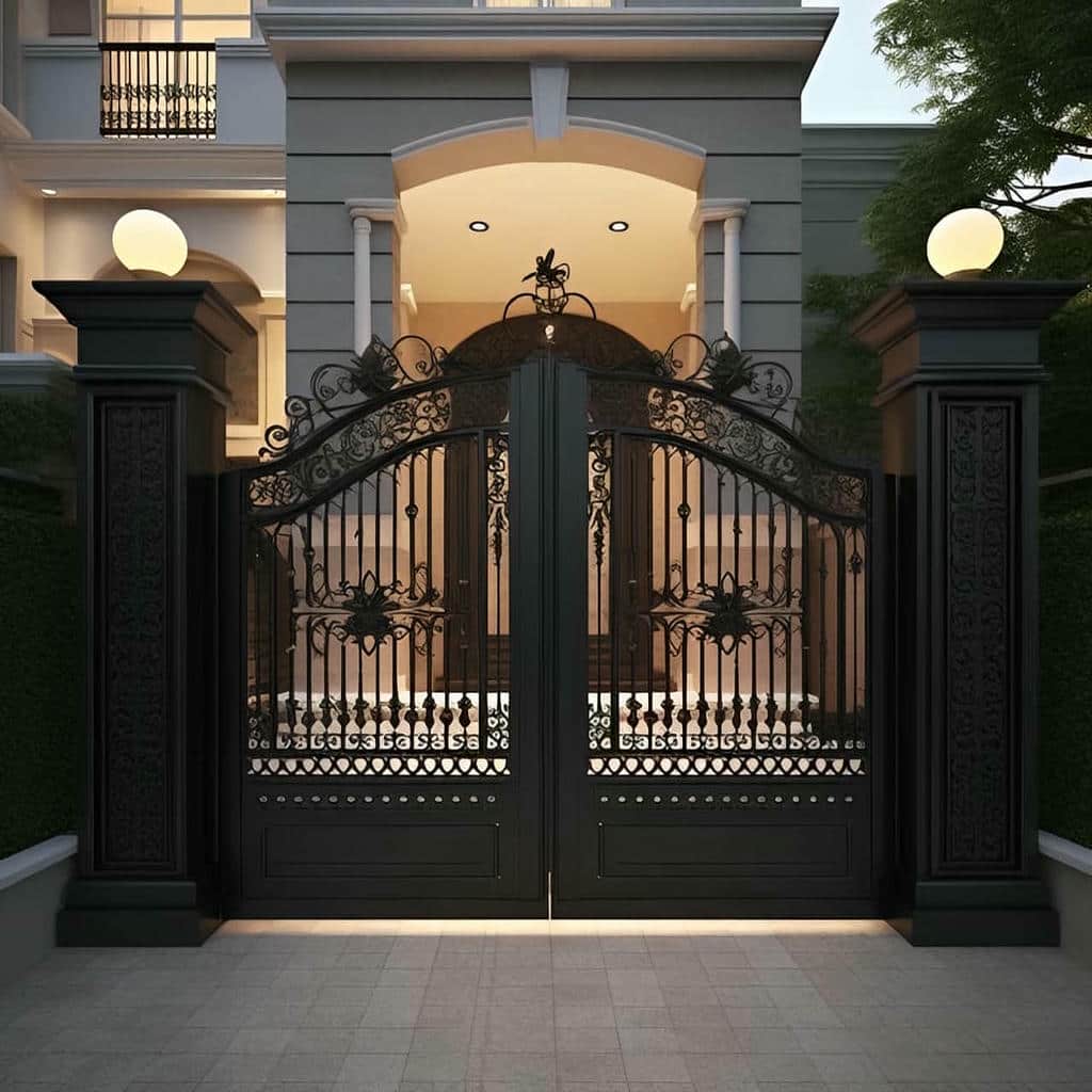 درب حیاط ساده و شیک ورودی ویلا برای پروژه هایی مناسب است که صاحب ویلا می خواهد در عین داشتن ورودی امن و با کیفیت از شلوغی و تزئینات بسیار پرکار دور باشد و تمرکز را روی معماری کلی ساختمان و محوطه سازی قرار دهد. در این سبک معمولا از قاب های فلزی تمیز با تقسیمات محدود و هماهنگ با خطوط نما استفاده می شود و اگر شیشه در طرح حضور داشته باشد به صورت نوارهای باریک یا پنجره های کوچک کار می شود تا هم نور کنترل شده وارد حیاط شود و هم حریم خصوصی حفظ گردد. در بسیاری از ویلاهای مدرن ترکیب درب حیاط ساده و شیک با دیوارهای کوتاه و نرده های افقی فلزی تصویر یک ورودی منظم و امروزی ایجاد می کند که در شب با نورپردازی خطی جلوه بیشتری پیدا می کند. در مرحله طراحی لازم است عرض مفید بازشو برای عبور خودروهای شاسی بلند و وانت های خدماتی در نظر گرفته شود و در عین حال وزن درب در محدوده ای نگه داشته شود که برای نصب جک پارکینگی استاندارد مناسب باشد و هزینه تجهیزات کنترلی بیش از حد بالا نرود. به عنوان مثال برای یک ویلا با دهانه حدود سه متر معمولاً درب دو لنگه با طراحی ساده بهترین تعادل میان زیبایی و عملکرد را ایجاد می کند و با وزن حدود 900 تا 1300 کیلوگرم در بازه منطقی قیمت قرار می گیرد. در نهایت با انتخاب درست رنگ و جزئیات می توان درب حیاط ساده و شیک را به نقطه شروع خوشامدگویی به مهمانان تبدیل کرد بدون آنکه نمای کلی شلوغ به نظر برسد.